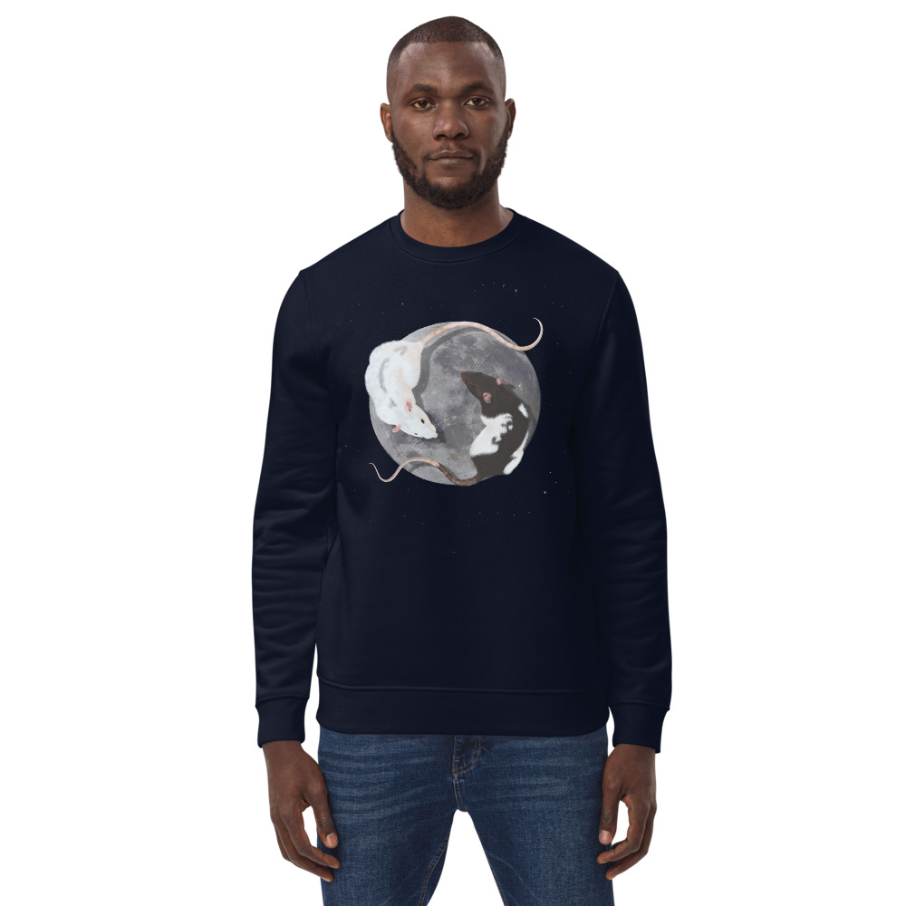 Een heerlijk comfortabel sweatshirt met een print van twee ratjes die aan het chillen zijn op de maan. De print is geïnspireerd op onze favoriete huisdieren ‘Dark’ en ‘Stormy’.