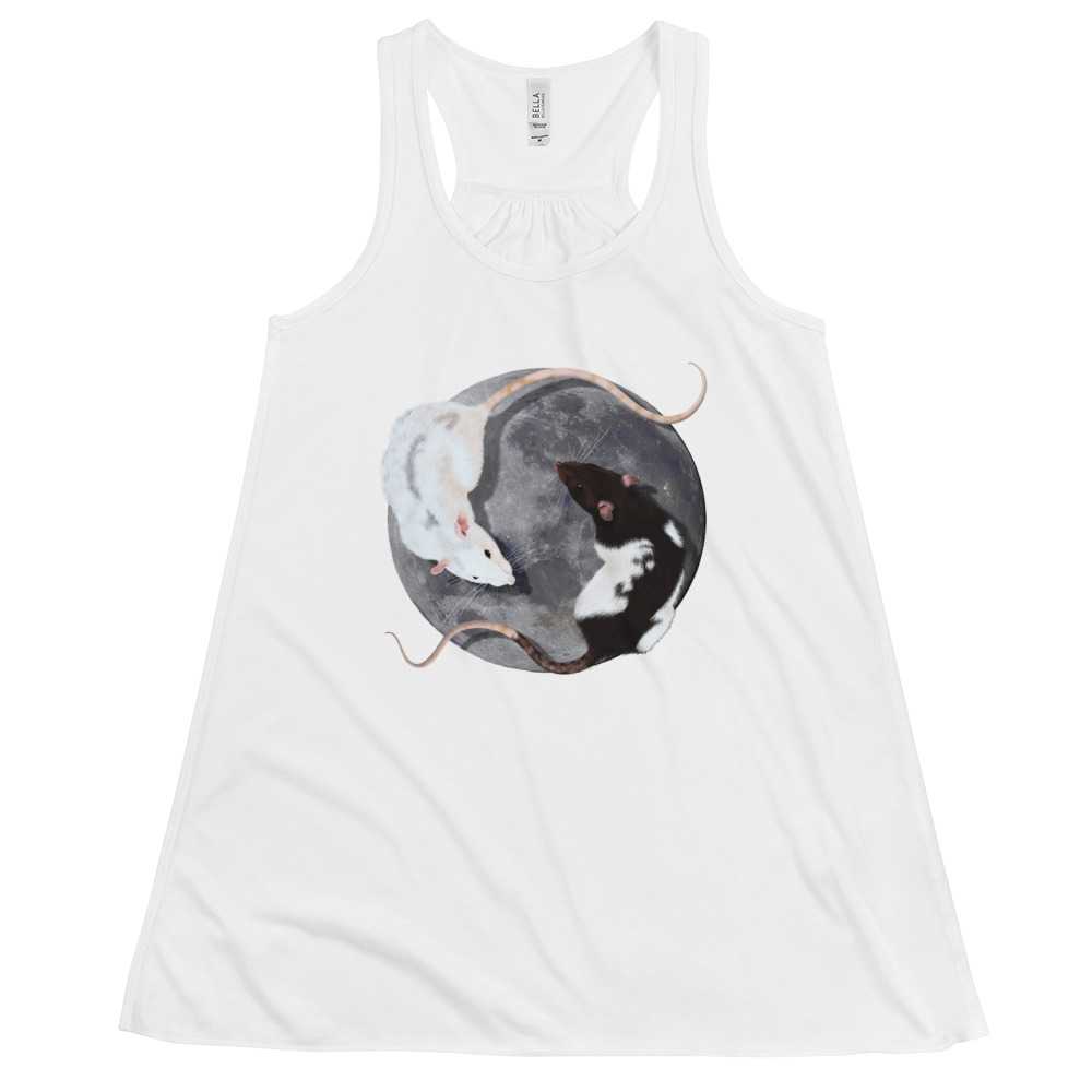 Een heerlijk comfortabele tanktop met een edgy vibe en een print van twee ratjes die aan het chillen zijn op de maan. De print is geïnspireerd op onze favoriete huisdieren ‘Dark’ en ‘Stormy’.